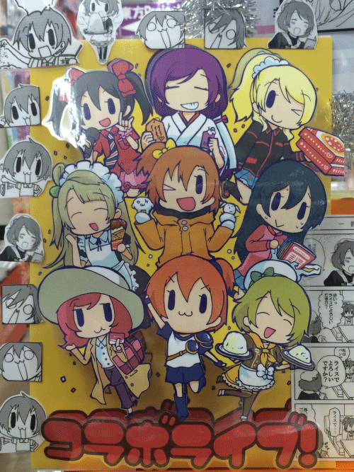 お店の方の御厚意で、「コラボライブ!」のPOPを作って頂きました…!