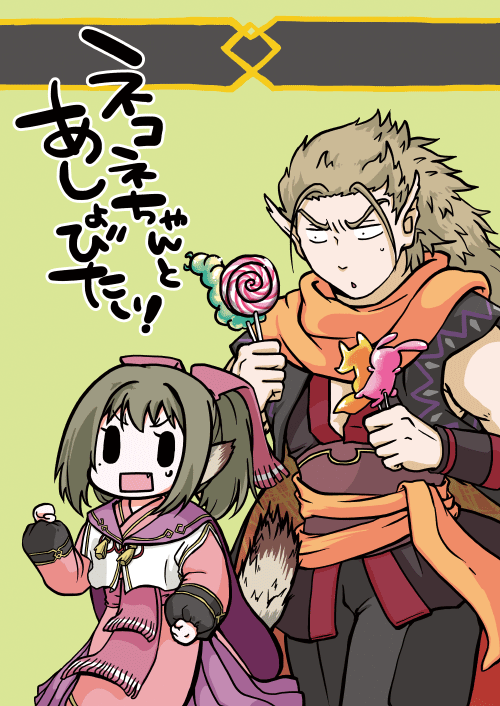 恒例おまけ年賀イラストでは、クオンちゃんとアマムニィを食べる会にしてみました。